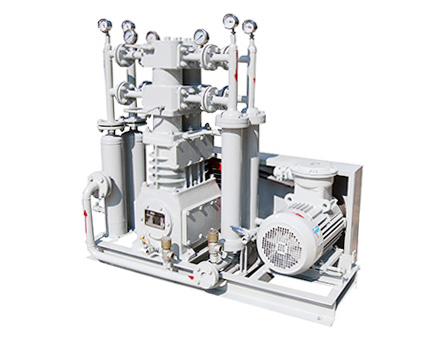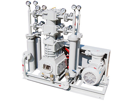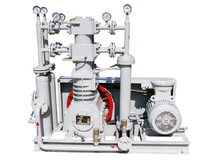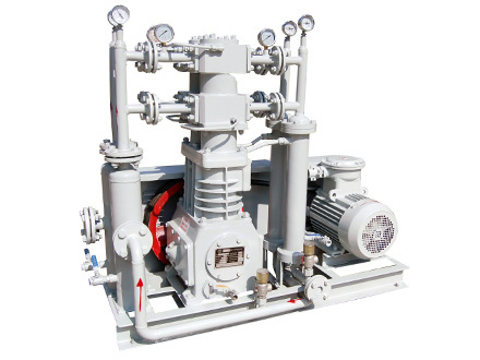 天然氣壓縮機是我公司自主研發(fā)的新型產(chǎn)品,往復(fù)活塞式結(jié)構(gòu) 。該機集壓縮機、冷卻器、電機、冷卻系統(tǒng)、共用底架等為一體。減少了占地面積,節(jié)省投資 ,方便操作,可為用戶最大限度的創(chuàng)造經(jīng)濟效益。該產(chǎn)品氣缸 、填料部件為無油潤滑,保證了其工作介質(zhì)的純度。曲軸、連桿、十字頭部件為壓力潤滑,以保證潤滑的可靠性。
