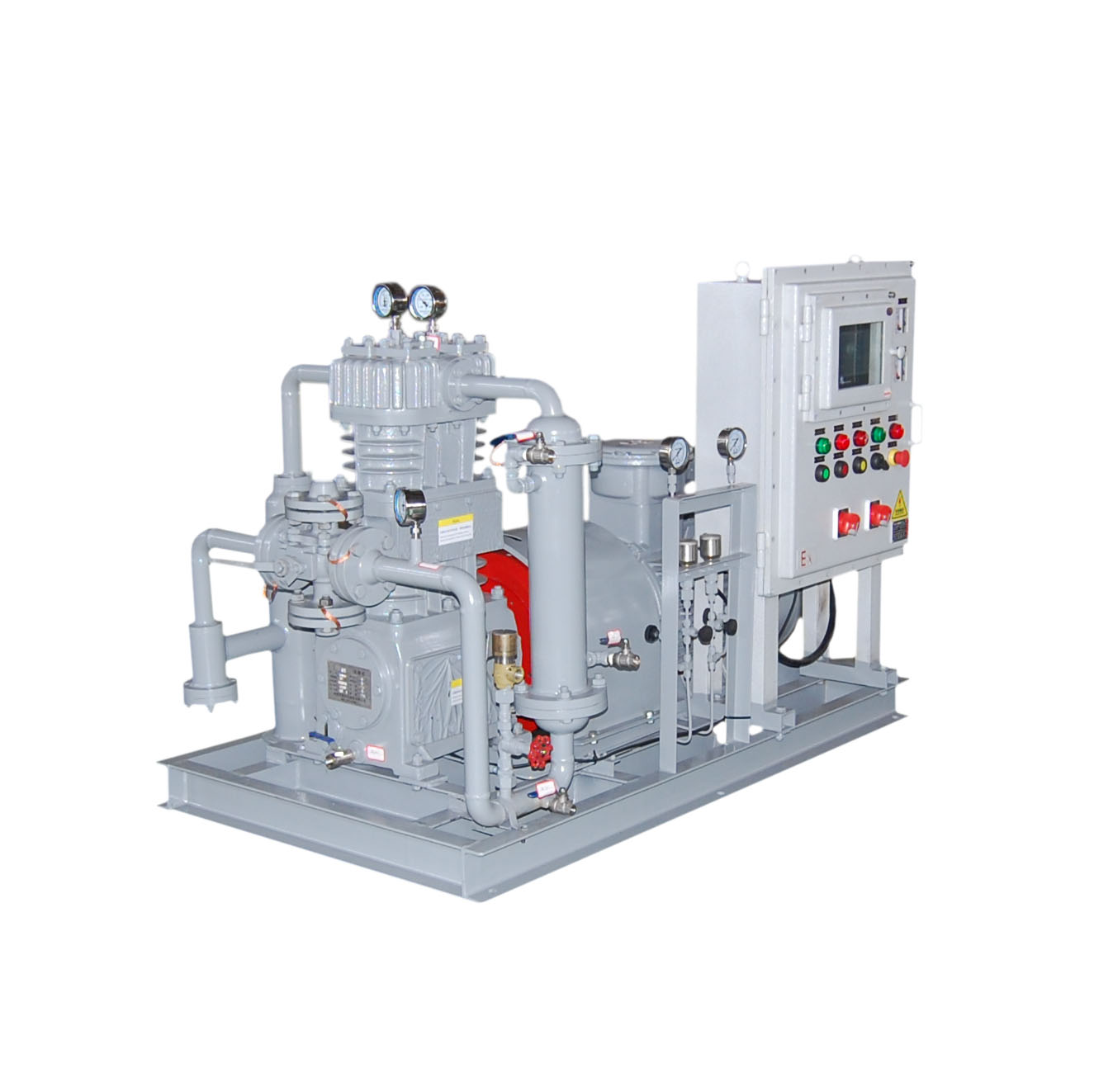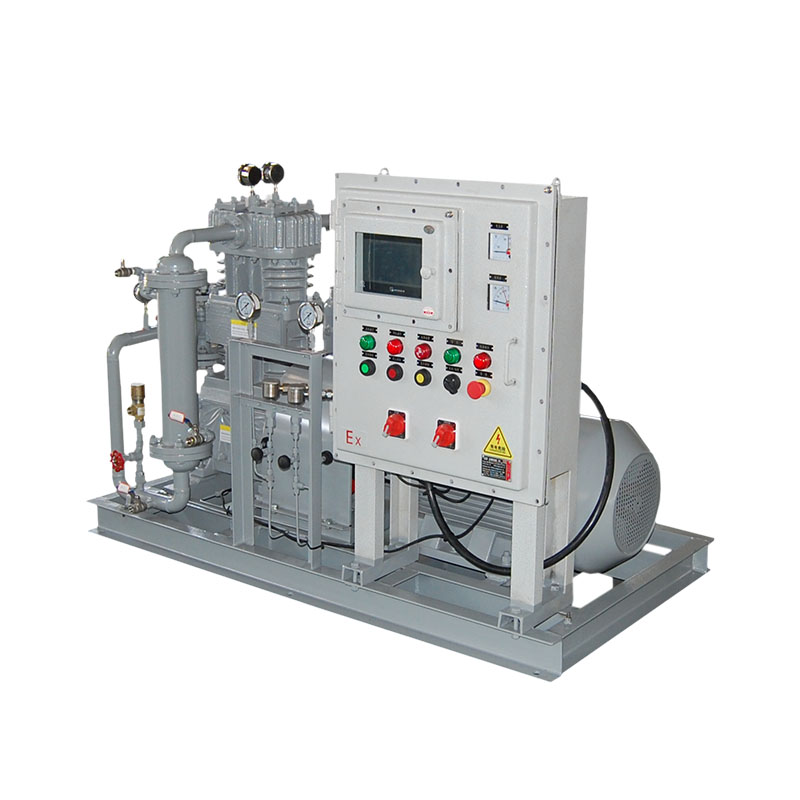 環(huán)己烷壓縮機(jī)是我公司新型產(chǎn)品,它集壓縮機(jī)、氣液分離器、安全閥冷卻器、電動(dòng)機(jī)等為一體,成一完整的機(jī)組。具有功能多、體積小、重量輕、功率小、運(yùn)行平穩(wěn)可靠等特點(diǎn),并有良好的安全性能。它為輸送氫氣,可為用戶最大限度地創(chuàng)造經(jīng)濟(jì)效益。由于采用獨(dú)特的無油潤(rùn)滑設(shè)計(jì),氣缸內(nèi)無需用油潤(rùn)滑,因而不會(huì)對(duì)介質(zhì)造成污染,使被輸送物質(zhì)保持純凈。本機(jī)設(shè)計(jì)成機(jī)組型式,許多管線上的附件都安裝在機(jī)組上,省卻了氣液分離器、穩(wěn)壓罐、安全閥、進(jìn)氣過濾器等,減小了機(jī)房的面積,減少了操作維護(hù)工作量,節(jié)省了投資。