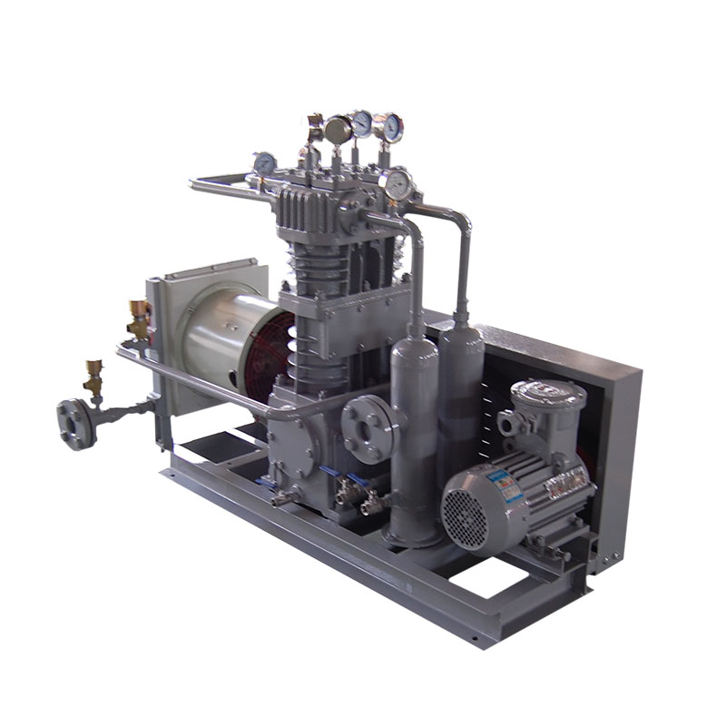 環(huán)氧乙烷壓縮機是我公司新型產(chǎn)品,它集壓縮機、氣液分離器、安全閥冷卻器、電動機等為一體,成一完整的機組。具有功能多、體積小、重量輕、功率小、運行平穩(wěn)可靠等特點,并有良好的安全性能。由于采用獨特的無油潤滑設(shè)計,氣缸內(nèi)無需用油潤滑,因而不會對介質(zhì)造成污染,使被輸送物質(zhì)保持純凈。本機設(shè)計成機組型式,許多管線上的附件都安裝在機組上,省卻了氣液分離器、穩(wěn)壓罐、安全閥、進(jìn)氣過濾器等,減小了機房的面積,減少了操作維護(hù)工作量,節(jié)省了投資。