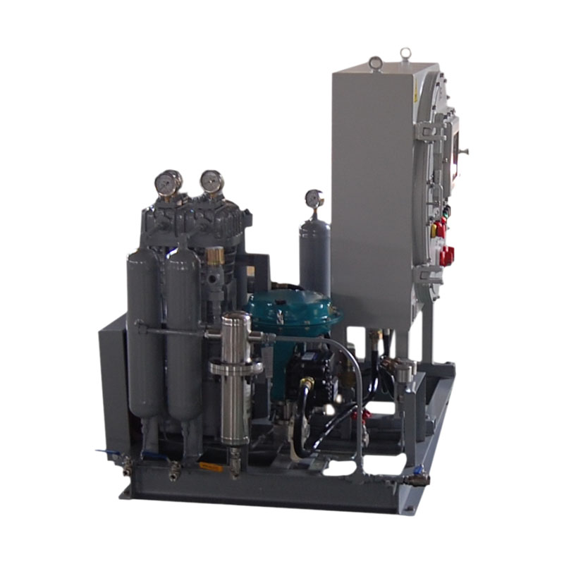 井口氣壓縮機(jī)是我公司新型產(chǎn)品,它集壓縮機(jī)、氣液分離器、安全閥冷卻器、電動(dòng)機(jī)等為一體,成一完整的機(jī)組。具有功能多、體積小、重量輕、功率小、運(yùn)行平穩(wěn)可靠等特點(diǎn),并有良好的安全性能。它為輸送井口氣,可為用戶(hù)最大限度地創(chuàng)造經(jīng)濟(jì)效益。由于采用獨(dú)特的無(wú)油潤(rùn)滑設(shè)計(jì),氣缸內(nèi)無(wú)需用油潤(rùn)滑,因而不會(huì)對(duì)介質(zhì)造成污染,使被輸送物質(zhì)保持純凈。本機(jī)設(shè)計(jì)成機(jī)組型式,許多管線(xiàn)上的附件都安裝在機(jī)組上,省卻了氣液分離器、穩(wěn)壓罐、安全閥、進(jìn)氣過(guò)濾器等,減小了機(jī)房的面積,減少了操作維護(hù)工作量,節(jié)省了投資。