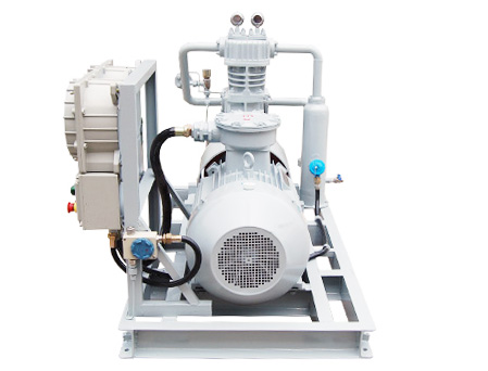氣氨壓縮機(jī)壓縮機(jī)是我公司新型產(chǎn)品,它集壓縮機(jī)、氣液分離器、安全閥冷卻器、電動(dòng)機(jī)等為一體,成一完整的機(jī)組。具有功能多、體積小、重量輕、功率小、運(yùn)行平穩(wěn)可靠等特點(diǎn),并有良好的安全性能。它為輸送氫氣,可為用戶最大限度地創(chuàng)造經(jīng)濟(jì)效益。由于采用獨(dú)特的無油潤(rùn)滑設(shè)計(jì),氣缸內(nèi)無需用油潤(rùn)滑,因而不會(huì)對(duì)介質(zhì)造成污染,使被輸送物質(zhì)保持純凈。本機(jī)設(shè)計(jì)成機(jī)組型式,許多管線上的附件都安裝在機(jī)組上,省卻了氣液分離器、穩(wěn)壓罐、安全閥、進(jìn)氣過濾器等,減小了機(jī)房的面積,減少了操作維護(hù)工作量,節(jié)省了投資。
